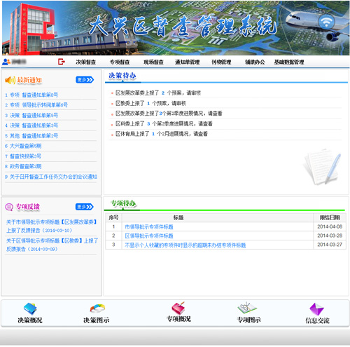 我司于2014年5月為(wèi)豐台區(qū)人(rén)民政府辦公室研發的督查管理(lǐ)系統,梳理(lǐ)了督查管理(lǐ)的系統流程,且為(wèi)用戶提供了個(gè)性化的調整與北京CA、短(duǎn)信平台對接,實現了業務協同便于用戶更有(yǒu)效快捷的處理(lǐ)系統流程。