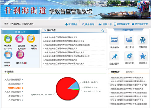 我司為(wèi)什刹海街(jiē)道(dào)開(kāi)發的軟件系統基于任務管理(lǐ)為(wèi)核心,依托先進的J2EE框架體(tǐ)系進行(xíng)建設,實現領導指揮、任務督辦、任務全流程跟蹤辦理(lǐ)的任務管理(lǐ)系統,方便用戶及時(shí)把握最新進展情況;全盤掌握本部門(mén)任務承辦情況等問題,大(dà)大(dà)提高(gāo)各部門(mén)的辦事效率。